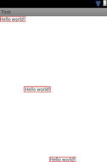 Got it! Now all the Views are created around the very center of the LL. If we unset the layout_gravity of the TVs we'll have them in the same position as the 2nd TV. Like this: